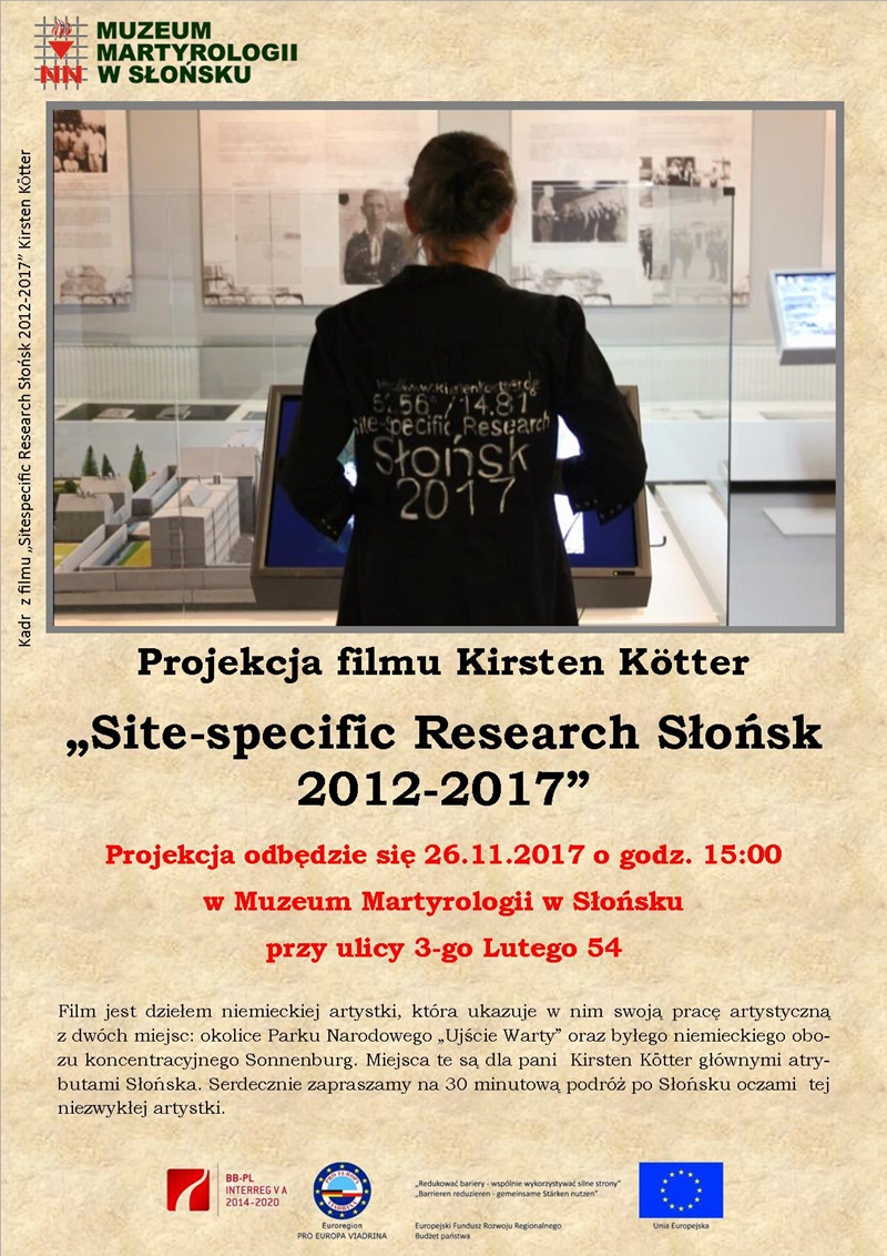 Download: Muzeum Martyrologii w Słońsku: Projekcja filmu Kirsten Kötter: "Site-specific Research Słońsk -". Poster presentation , Słońsk (JPG, polski, 291 KB)